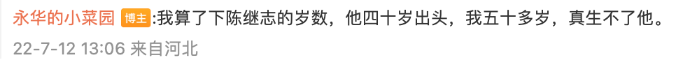贾永华还回复网友称,“我算了下陈继志的岁数,他四十岁出头,我五十多岁,真生不了他。”“一些人是真坏,抹黑我,就是想污蔑我之前的辟谣是夹带私货。也有一些人是真傻,轻而易举的就上当了…”