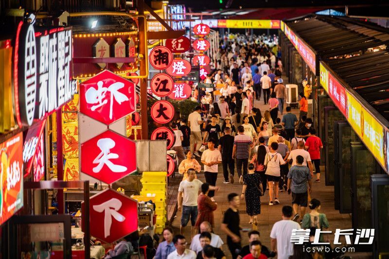 人头攒动的扬帆夜市,共有摊位300多个,长沙市目前规模最大的夜市。长沙晚报全媒体记者 刘晓敏 摄