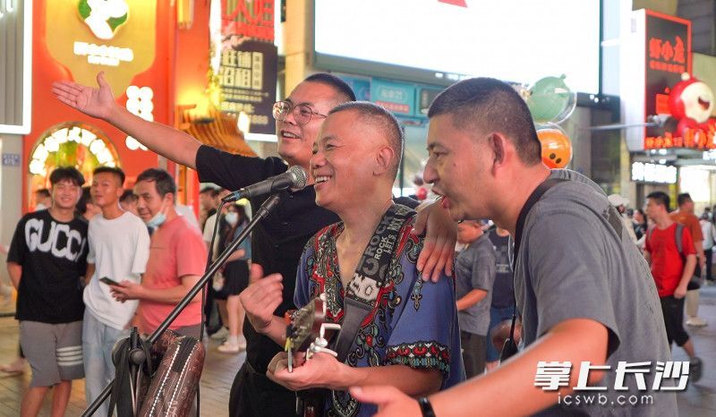 黄兴路步行街,游客与歌手共同演绎,别有一番韵味。长沙晚报全媒体记者 周数邑 摄