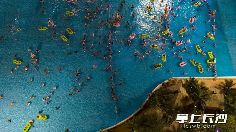 晚8时30分,大王山湘江欢乐城水寨,众多游客来到这里水上撒欢,享受清凉一夏。长沙晚报全媒体记者 邹麟 摄