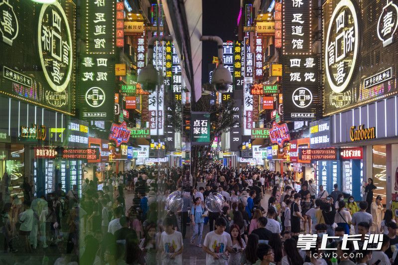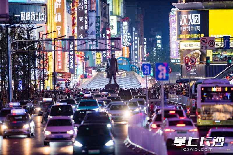 凌晨2时,解放西、黄兴路步行街车行缓慢,人声鼎沸。这让第一次来长沙旅游的小何同学忍不住感叹,“长沙和我想象中的一样,好热闹!好韵味!”