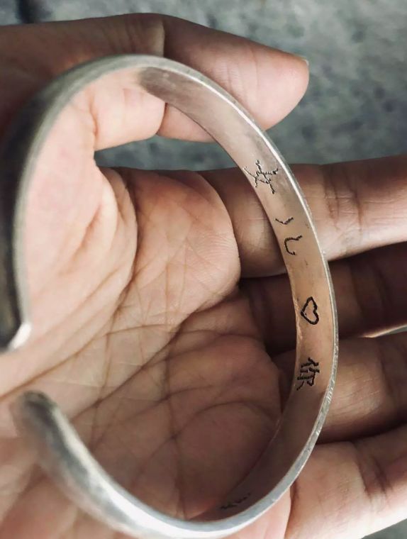 黄文秀离开后她的母亲手腕上一直戴着一个手镯朝里的一侧刻着四个字“女儿爱你”这是黄文秀从网上