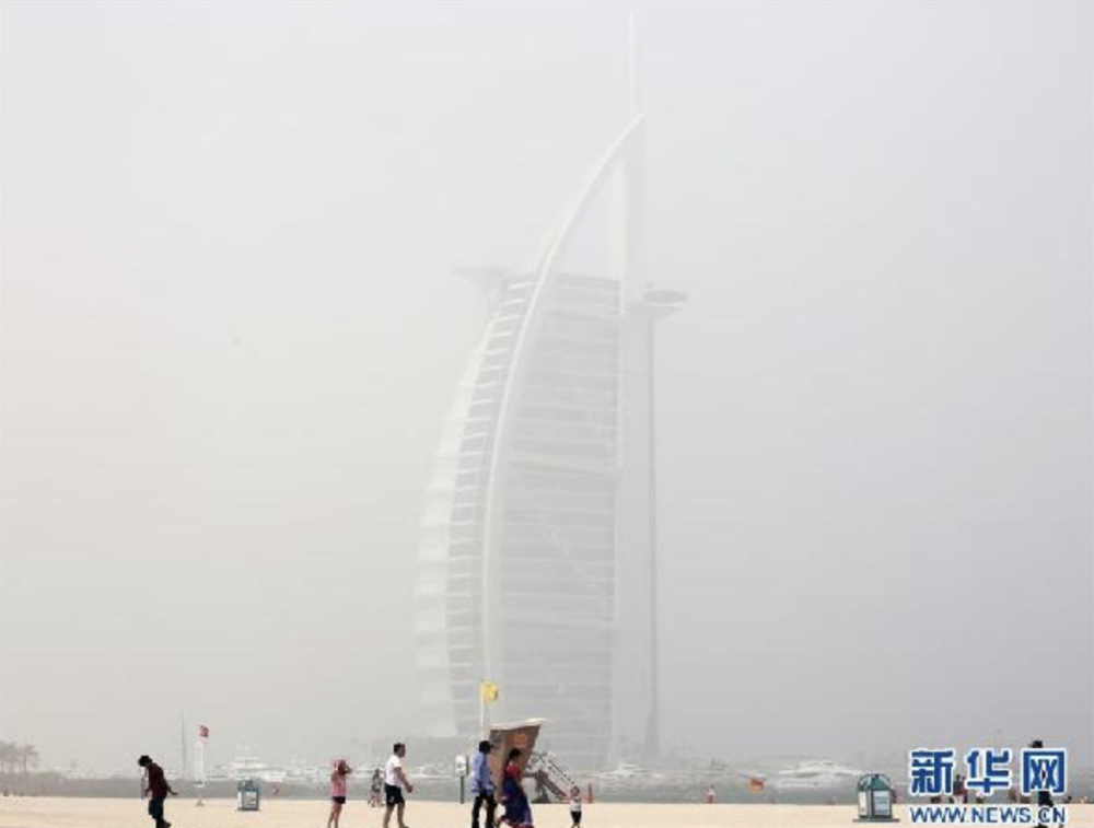 2018年5月,迪拜的天空变成了灰白色,则是因为强沙尘暴袭击迪拜,空气中沙尘弥漫,才让整座城市看起来一片灰白。