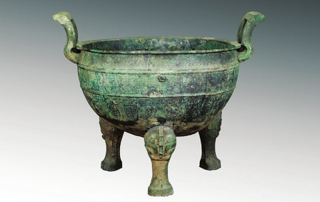 太原南郊金胜村的晋国赵卿墓,是迄今为止所见春秋时期等级最高、规模最大、随葬品最丰富、资料最完整的晋国的高级贵族墓葬。在这座积石积炭的墓葬当中,出有一件高近1米,口径1.04米的镬鼎。圜底形的深腹下面,接有三条粗壮的兽蹄足,足根饰高浮雕的兽面纹,腹饰夔龙、夔凤和蟠螭纹。器形硕大雄伟,造型古朴浑厚,鼎腹足可盛一肥牛,是迄今所见春秋时期最大的鼎。