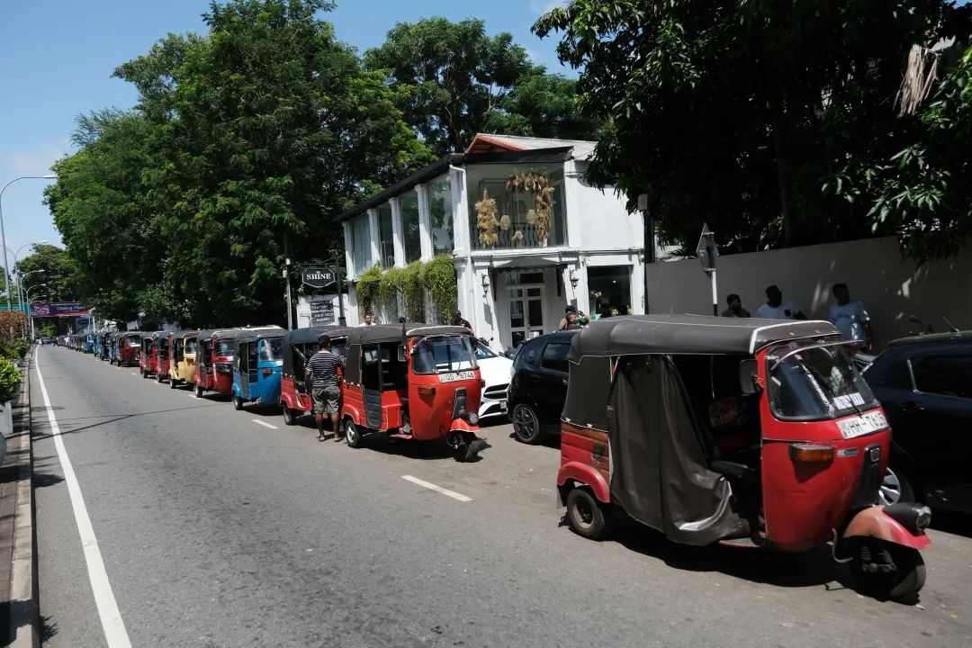 在斯里兰卡首都科伦坡,人们排队等待加油。王申摄(新华社)