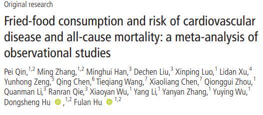 ④Pei Qin.et al.Fried-food consumption and risk of cardiovascular disease and all-cause mortality: a meta-analysis of observationalstudies.heart.2021.http://dx.doi.org/10.1136/heartjnl-2020-317883