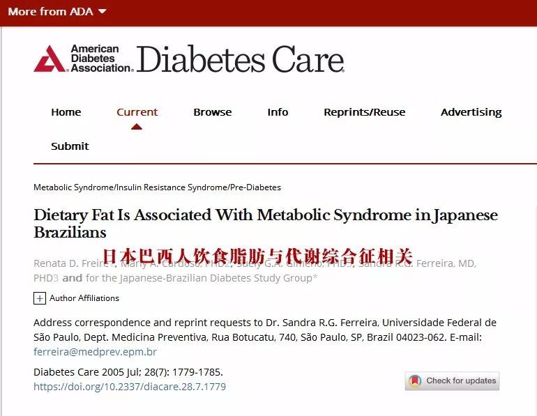⑦;Dietary Fat Is Associated With Metabolic Syndrome in Japanese BraziliansDiabetes Care 2005 Jul; 28(7): 1779-1785.https://doi.org/10.2337/diacare.28.7.1779