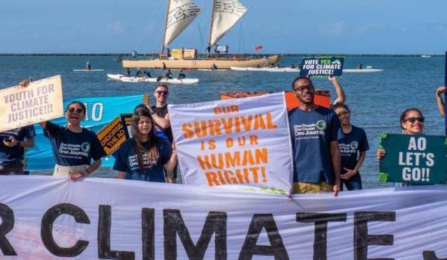 此前,瓦努阿图已发起一项运动,要求国际法院 (ICJAO)就气候变化对人权的影响提供咨询意见。7月8日,20多艘学生船只组成船队,在苏瓦海岸拉起许多旗帜,倡议本地区领导人关注拟提交国际法院的议案。学生代表Vishal Prasad表示,“创可贴”式的解决方案已经落后,岛民每天都在面对气候变化对住房、食物、水、环境、卫生设施、医疗保健和生计的影响,他们需要全球性解决方案!一旦国际法院介入,《巴黎气候协定》将被更好地执行,人权将被作为气候问题的重要因素得到回应,经历严重气候危机的岛民将受到重视,所有工作都将得到提速。