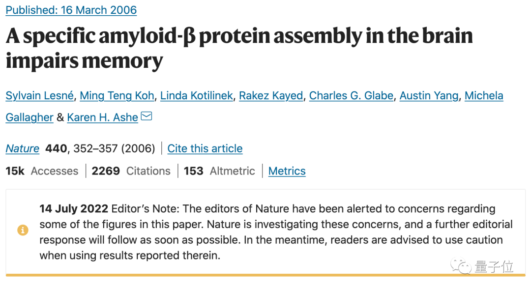值得一提的是,论文一作西尔万·列斯纳(Sylvain Lesné)在这轮学术打假中,被发现了大约有20篇文章有造假嫌疑。