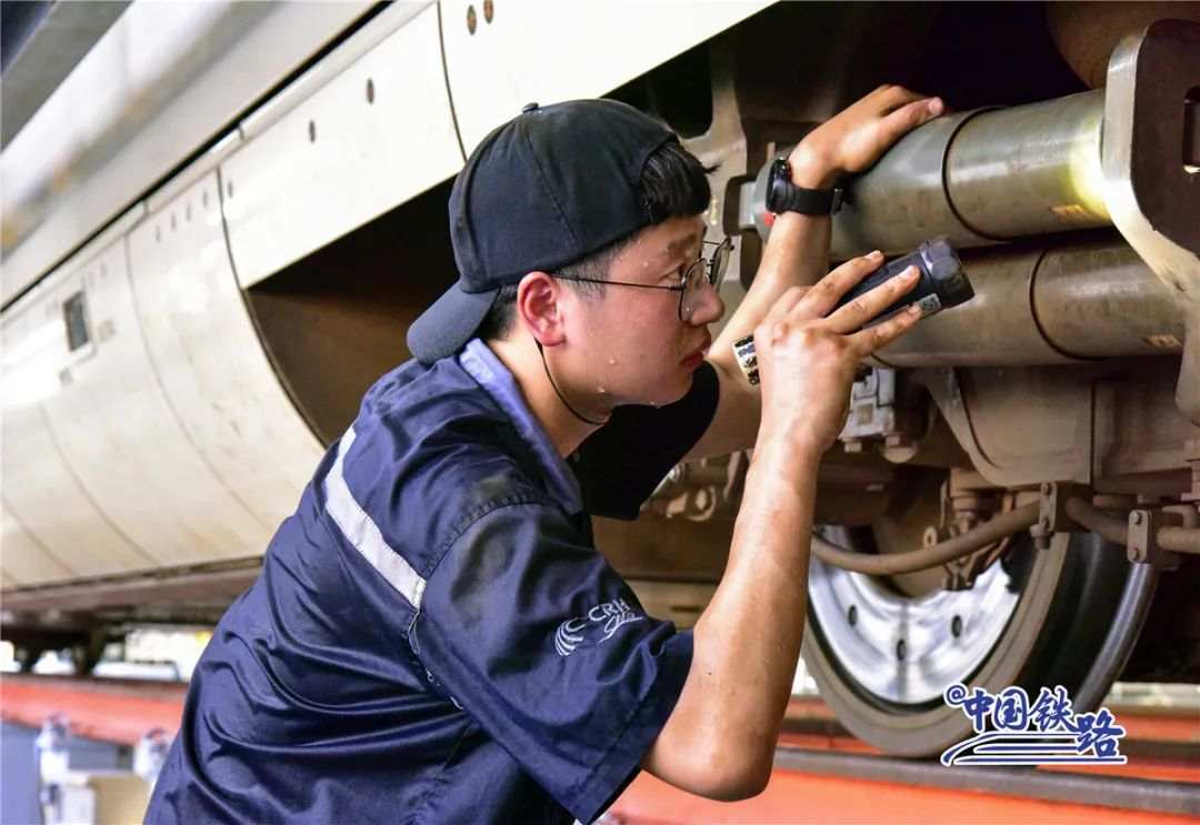 陈良亮和两名年轻的机械师钻进车底,用工具反复探查,两个多小时后检修完毕,汗水早已浸透工作服。