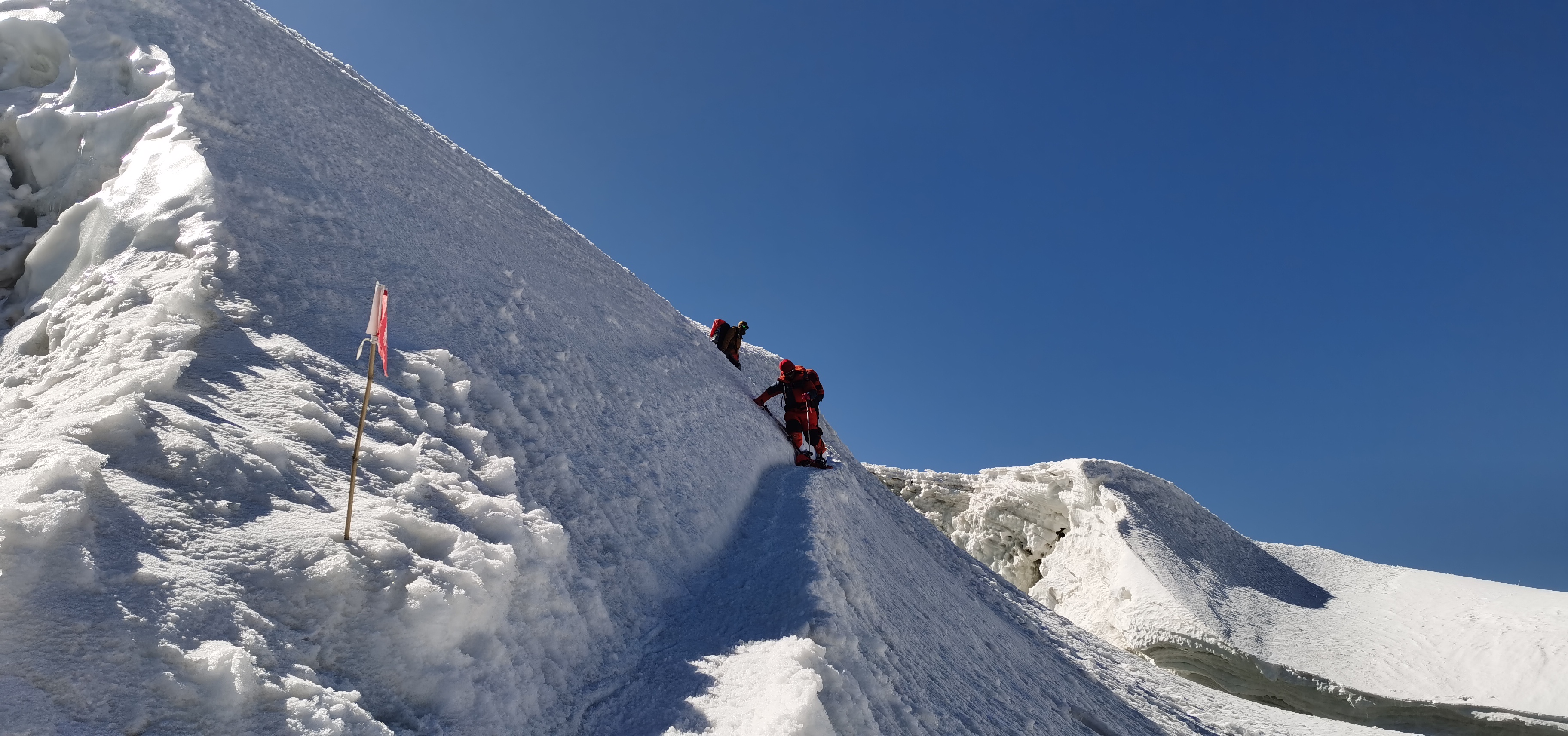 登顶过程并非一蹴而就,需要适应性拉练时间。第一次拉练从4400米大本营“进攻”到5000多米的C1营地,然后下撤至大本营;第二次拉练从大本营到6000多米的C2营地,逐步适应和熟悉山上状况。