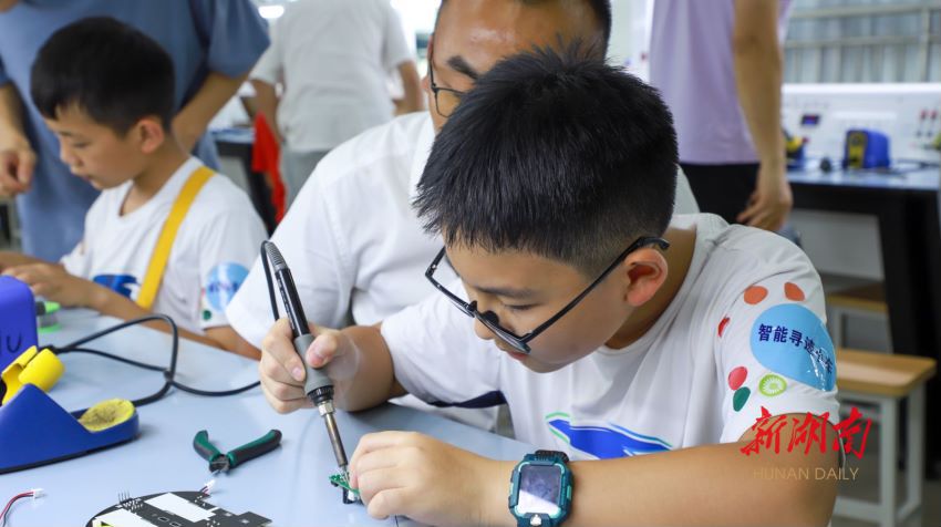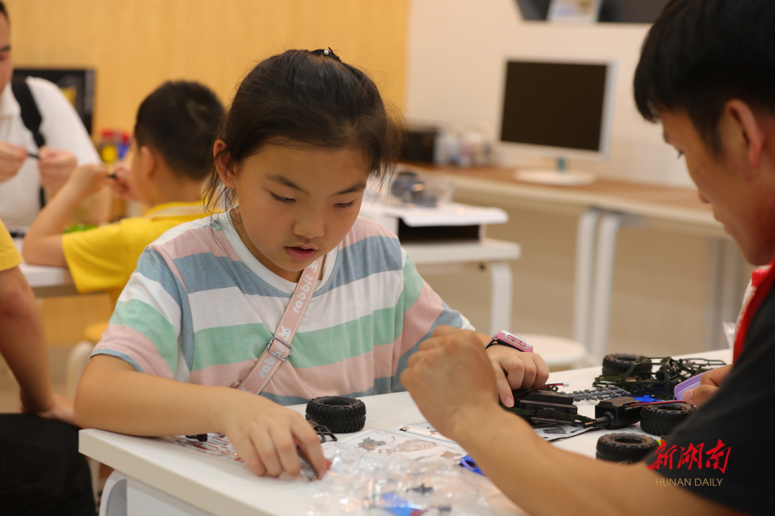 此外,活动还设置了参观汽车品牌基地、试乘无人驾驶与巴哈赛车、拼装小型车模、组装智能寻迹小车、制作创意发夹与头饰、手工花卉刺绣等多个体验项目,小朋友们和不少家长踊跃加入,共同感知科技的无穷魅力。整个现场充满欢声笑语,热闹非凡。