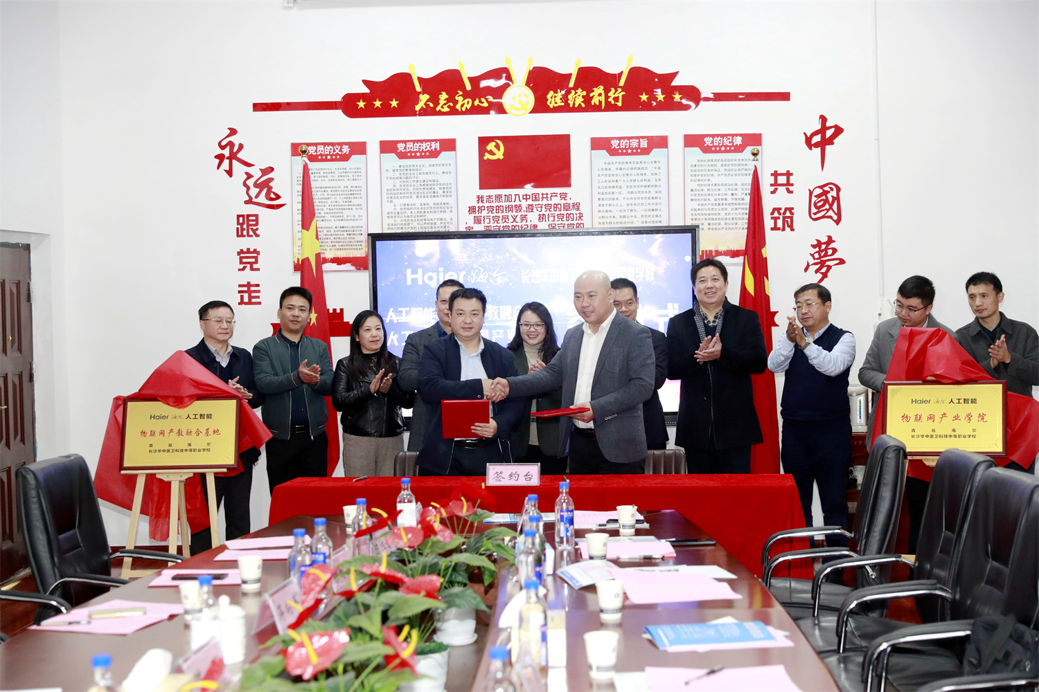 “这也是青岛海尔第一次与中职院校合作。”陈强介绍,学校将探索建立为企业提供人才个性化定制服务的长效机制,并将有益经验辐射至区域内物联网(大数据应用)企业;基地将采取“一校一企”生态运营模式,鼓励实践性企业孵化,条件成熟时将打造创新创业孵化基地;校企双方将以学校双创工作室为主体注册成立实践型企业,将青岛海尔湖南区域的技术支持中心、人才培训中心、售后服务中心和创新体验中心引入到产教融合基地;海尔集团及下属企业每年派遣中高层管理人员来长座谈交流,定期举办行业内具有一定影响力的交流论坛,并以建设产教融合基地助力引进数字经济的知名企业落户天心经开区。