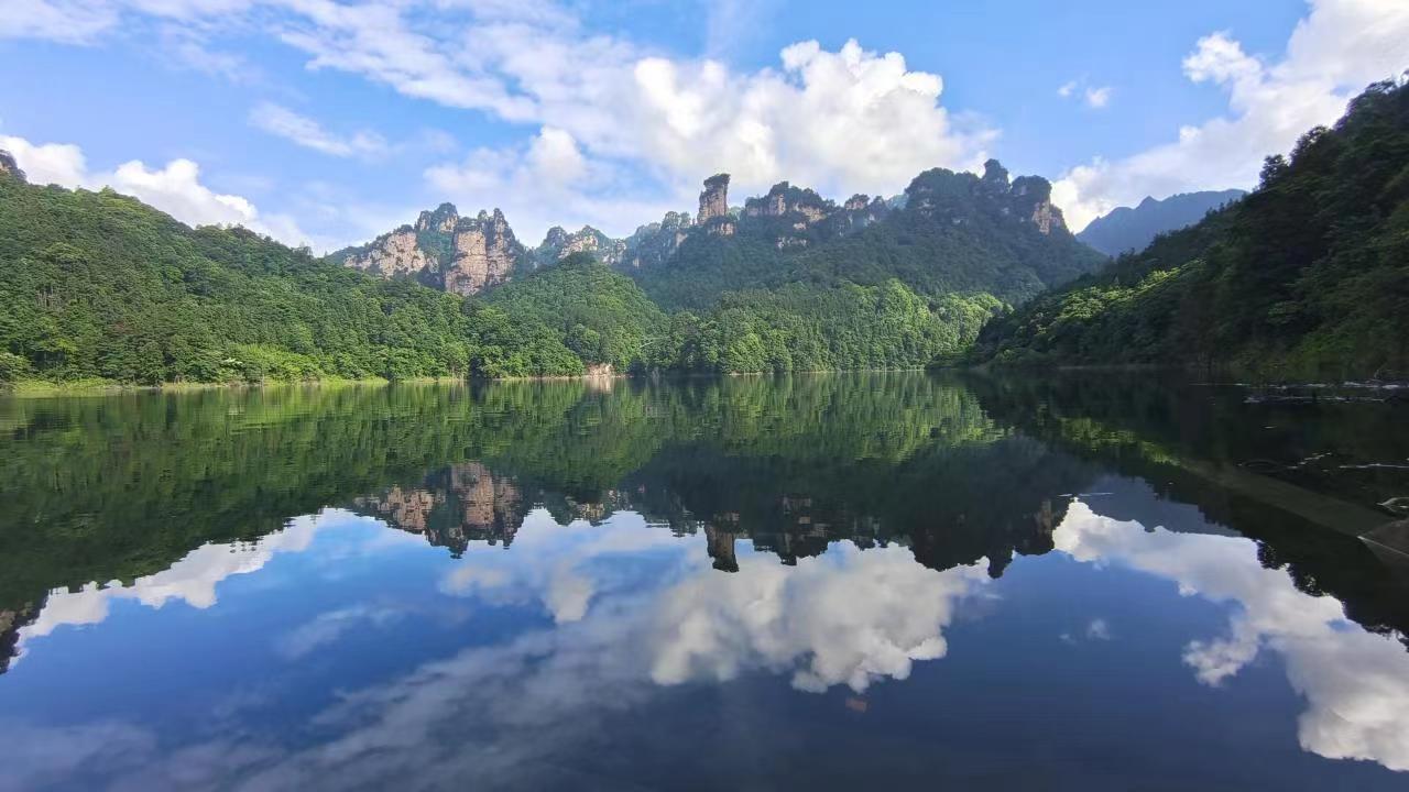人民网长沙7月8日电 (向宇、吴勇兵)盛夏时节,世界自然遗产地张家界武陵源峰峦叠翠、碧水淙淙,清爽宜人。