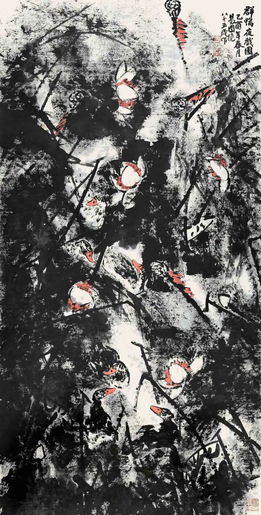 群鸭夜戏图 243×123cm