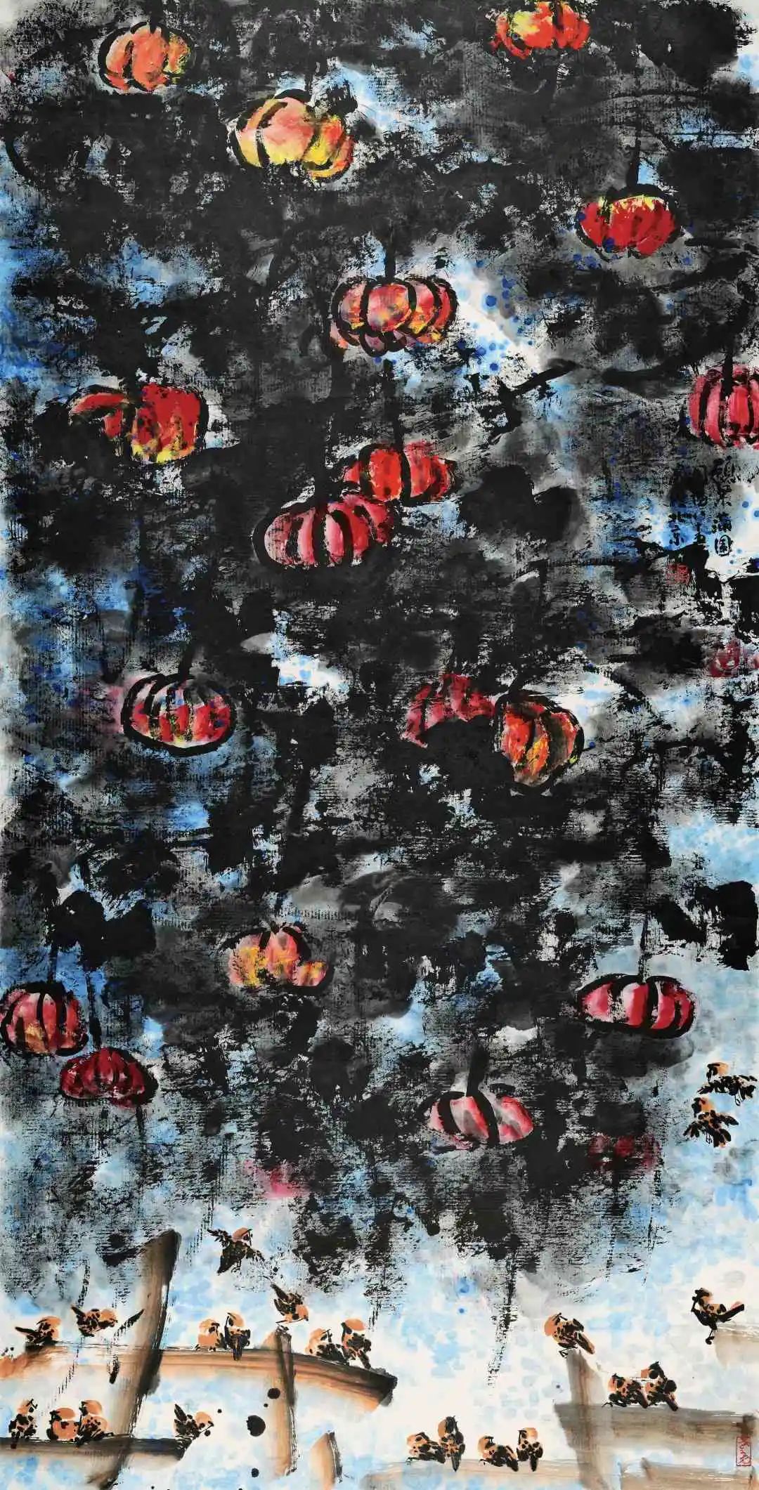 葫芦鸡群 图境90岁于怀化学院美术馆 278.7×69cm