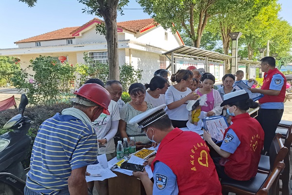 (交警帮助群众填写相关信息。图片来源:湖南文明网)