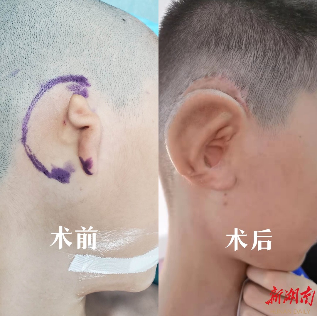 大众卫生报·新湖南客户端7月1日讯(图文视频/记者 王璐 通讯员 彭湘粤)“有对漂亮、对称的耳朵。”这是同患先天性小耳畸形的邵阳小兄妹小轩、小敏一直以来的梦想。6月27日,12岁的哥哥小轩成功在湖南省儿童医院耳鼻喉头颈外科接受右耳耳廓再造III期手术,左右两边耳朵恢复正常大小。6月29日,10岁的妹妹小敏在全麻下行左侧全耳再造I期+皮肤扩张器置入术,手术顺利,3-6月后将再次行II期手术,未来她将会跟哥哥一样实现自己的梦想。