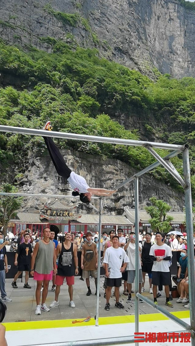三湘都市报·新湖南客户端7月22日讯(省直宣传文化单位支持旅发大会前方工作队 丁鹏志 通讯员 丁云娟)7月23日,天门山“云纵天梯”跑酷大赛将在张家界天门山景区开赛。今天上午,所有参赛选手齐聚天门山999级天梯处,提前熟悉赛道情况。其中,就有张家界籍的体操世界冠军商春松。