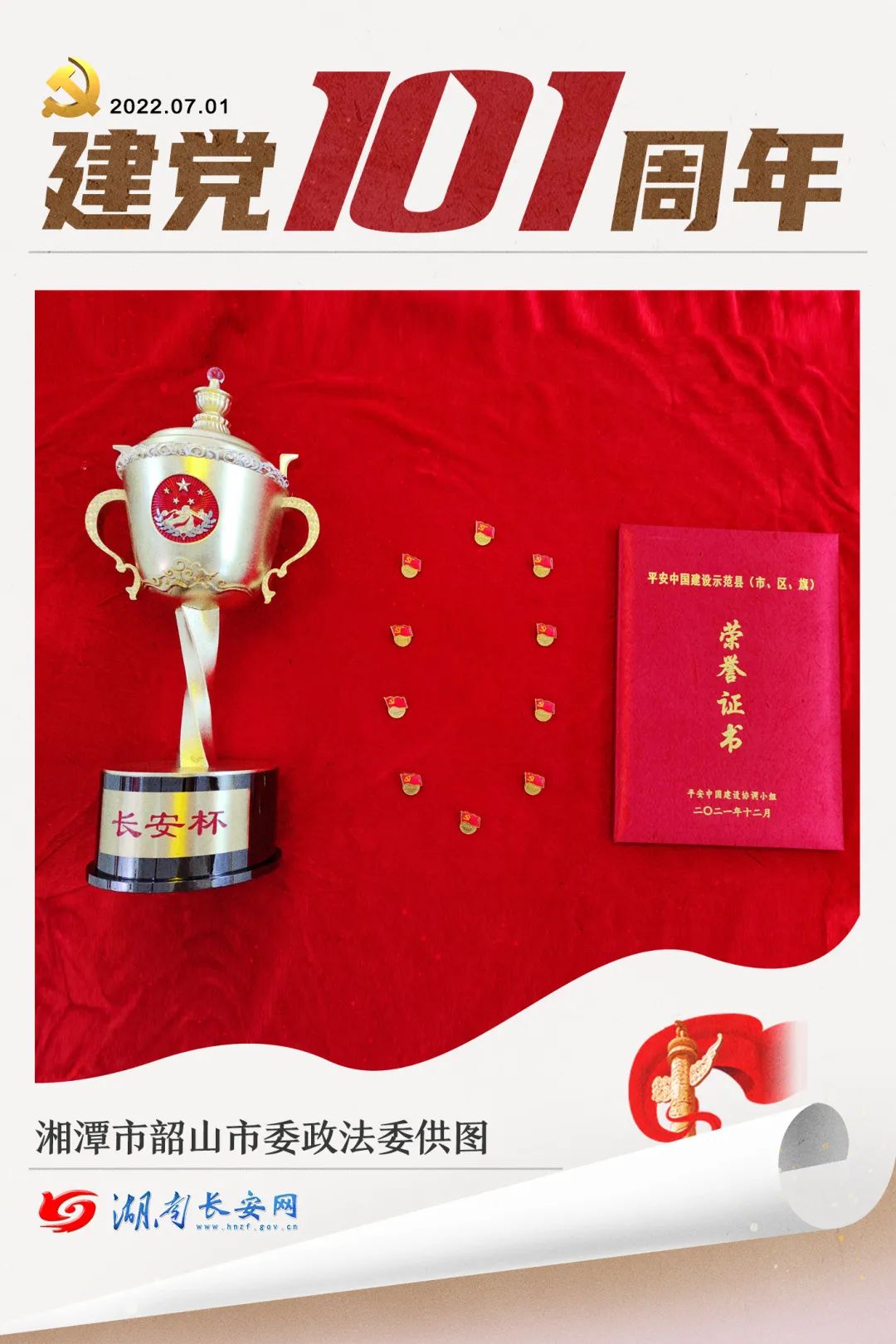 党徽、长安杯和荣誉证书组成的“101”。