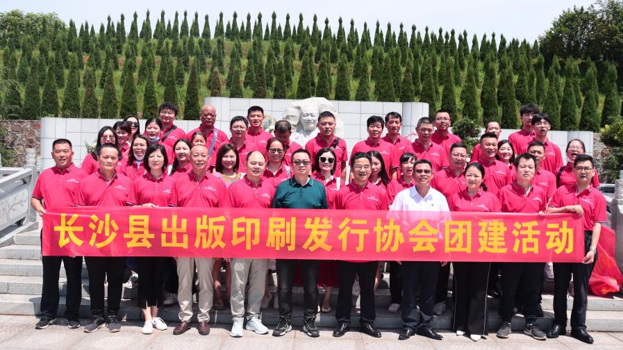 新湖南客户端7月27日讯(通讯员 鲁钦轲)喜迎二十大,建功新时代。日前,长沙县出版印刷发行协会以“喜迎二十大永远跟党走奋进新征程”为主题,在岳阳市平江县长寿镇张震将军公园开展了红色路线团建活动。长沙县委宣传部印刷出版和电影管理科、长沙县出版印刷发行协会理事和会员参与本次活动。