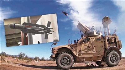 (美国雷声公司测试“郊狼”巡飞弹反无人机作战效能。小图为“郊狼”巡飞弹。)