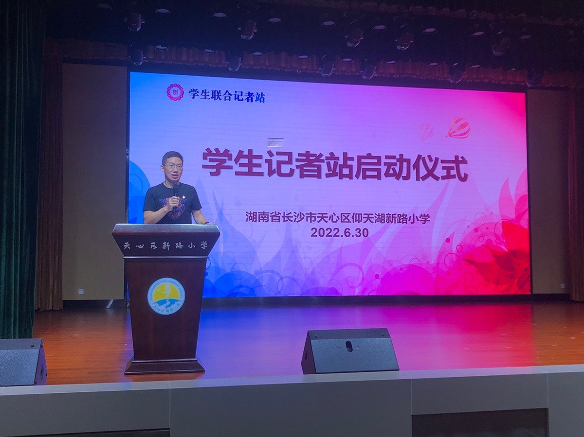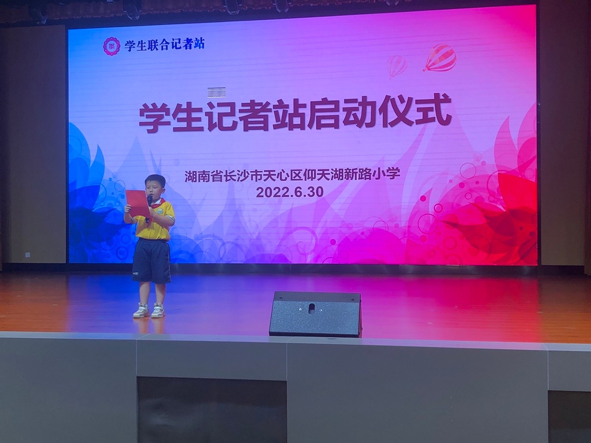 新湖南客户端7月1日讯(通讯员 代羽洁)6月30日下午,长沙市仰天湖新路小学举行《E学中国》学生记者站启动及授牌仪式,《E学中国》采编中心主任周密,仰天湖新路小学校长戴灿军,仰天湖新路小学大队辅导员黄源出席,小记者汪子琪主持此次启动仪式。