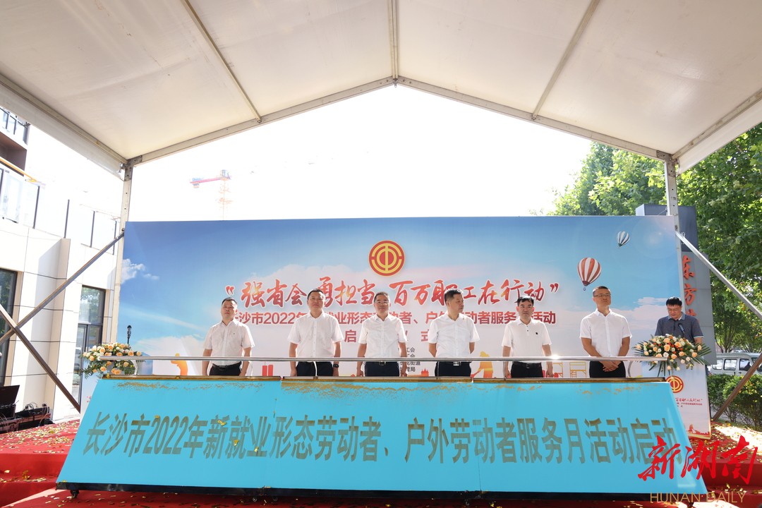 新湖南客户端7月26日讯(记者 郭芝桃 通讯员 邹亚果)7月26日,“强省会 勇担当 百万职工在行动”长沙市总工会2022年新就业形态劳动者、户外劳动者服务月活动在长沙县长龙街道的工会户外劳动者服务站点正式启动。