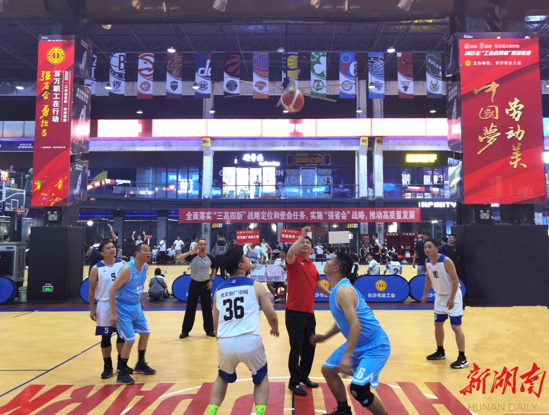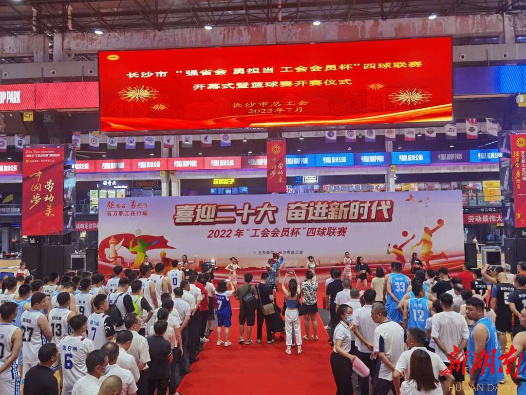 新湖南客户端7月12日讯(记者 郭芝桃 通讯员 邹亚果 李玉华)喜迎二十大,奋进新时代。7月12日,由长沙市总工会主办的“强省会 勇担当 工会会员杯”四球联赛开幕式暨篮球赛开赛活动在长沙县举办。各开发区、区县(市)总工会和产业(系统)工会组织上万名职工参加预选赛,经过选拔,共28支队伍的400名职工参与角逐,篮球赛事将为期6天。