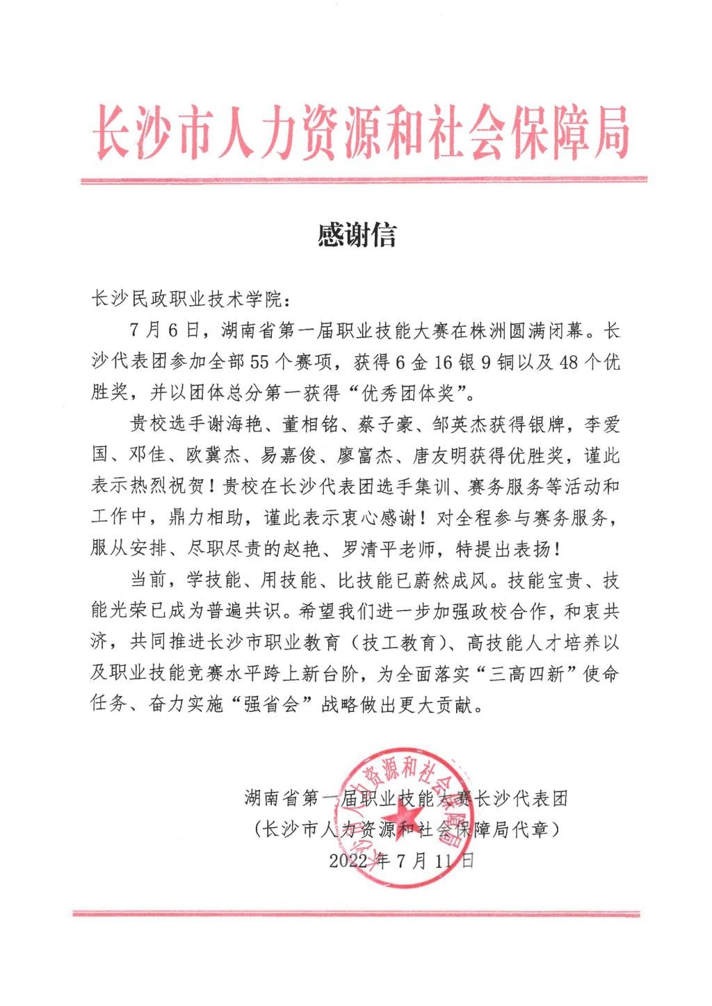本次大赛是我省迄今为止规格最高、项目最全、规模最大的职业技能大赛,凡16周岁以上、法定退休年龄以内的我省居民均可通过所在市州、行业报名参赛。来自全省14个市州、21个行业部门的35个参赛代表团、1087名选手,共同角逐55个比赛项目。长沙民政职院共派出14名选手,代表长沙市代表团参加养老服务技能、全媒体运营、动漫制作等8个项目的比赛,获得了4枚银牌、4个优胜奖的好成绩。