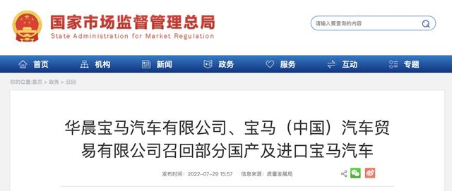 日前,华晨宝马汽车有限公司、宝马(中国)汽车贸易有限公司根据《缺陷汽车产品召回管理条例》和《缺陷汽车产品召回管理条例实施办法》的要求,向国家市场监督管理总局备案了召回计划,自2022年9月9日起召回以下车辆。