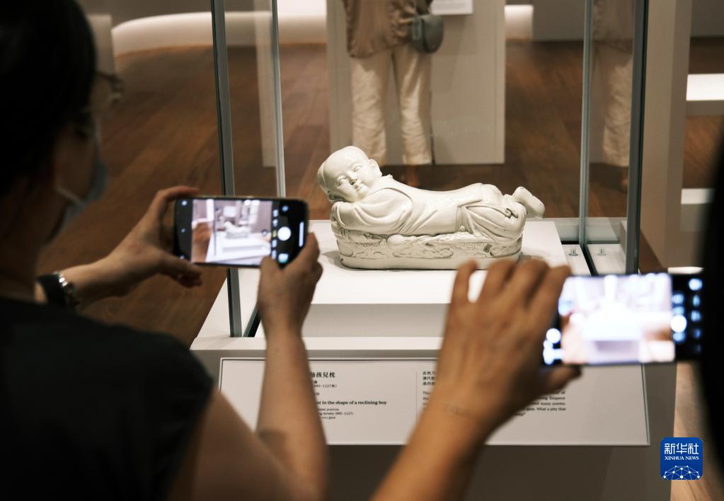 7月3日,参观者在香港故宫文化博物馆展厅内拍摄展品。新华社记者 王申 摄