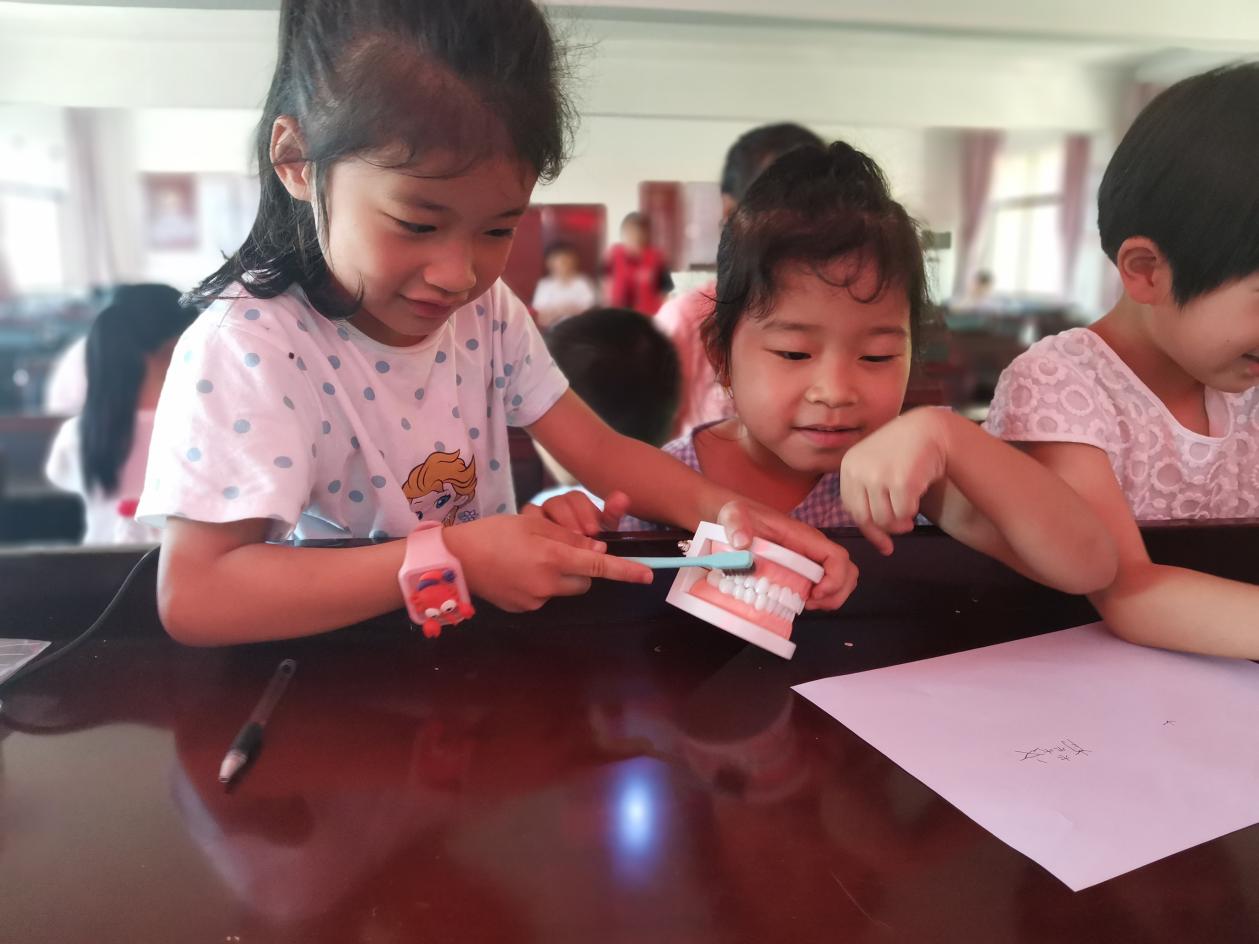 开营第一课,来自暄美齿科的医护人员,通过结合牙齿道具,围绕“牙齿有什么作用?”“龋齿是怎样形成的?”“如何保护牙齿以及正确的刷牙方法”等方面深入浅出地讲解了爱牙和护牙的知识。此外,医护人员逐一为小朋友们检查牙齿状况,根据不同的情况为孩子们制定了合适的解决方案。