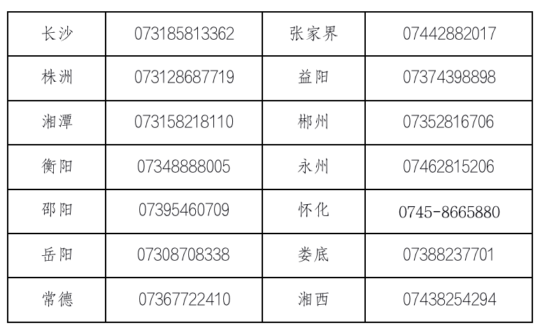 附:各市州残疾人就业服务中心联系电话