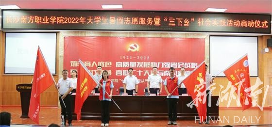新湖南客户端7月4日讯(通讯员严晓蕾 夏妍)7月2日上午,长沙南方职业学院2022年学生志愿者暑期“三下乡”社会实践活动出征仪式在学术报告厅隆重举行。