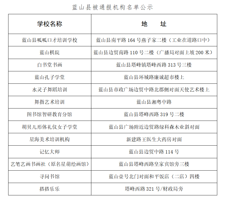 蓝山:17部门联合执法 开启暑期校外培训清朗计划