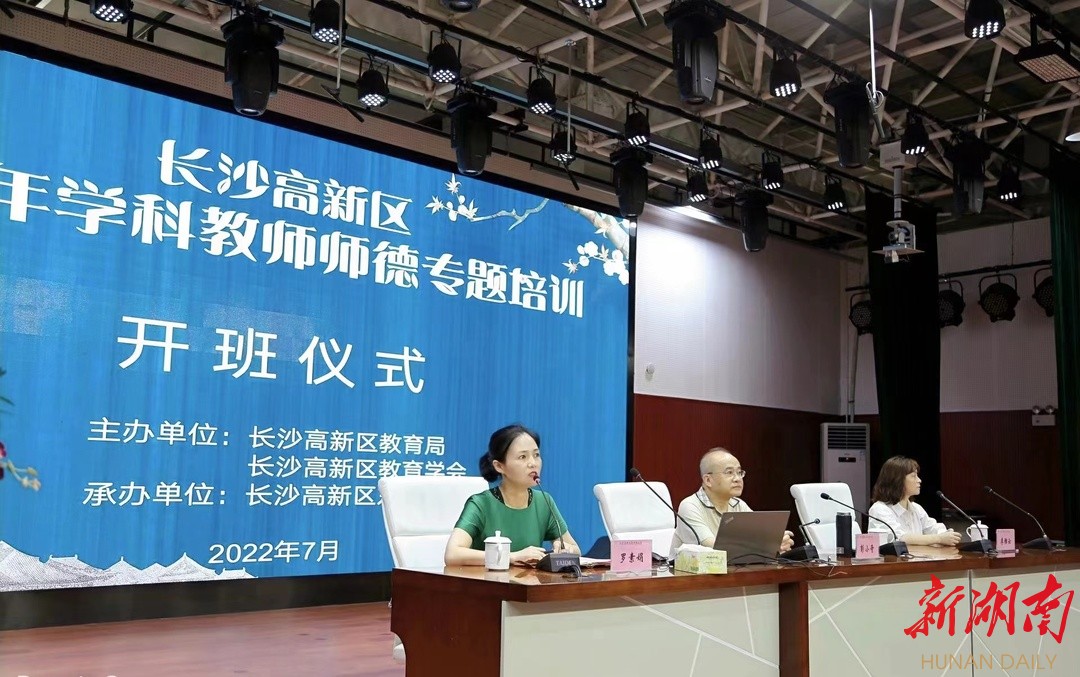 科教新报·新湖南客户端讯(通讯员 蒋娅娟)为全面增强教师“四个意识”,践行“四有好教师”标准、努力当好“四个引路人”,持续推进区综合养成教育体系建设,7月12日,长沙高新区教育局主办的为期三天的教师教育“底座工程”全员培训拉开了帷幕。第一天举行教师师德及通识培训,区教育局领导、全体教研员以及2022年中小幼教师岗位培训班全体学员共800余人参加了此次培训活动。