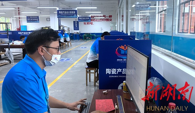 在湖南省陶瓷技师学院赛点,选手对陶瓷产品从设计构思到手工绘图、软件设计表达,再到制作、装饰环节进行具体呈现。赛事裁判长朱辉球告诉记者,参赛的12名选手中,既有职业院校的学生和教师,也有来自企业的能工巧匠。