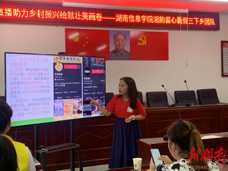 湖南日报•新湖南客户端7月13日讯(通讯员 肖鹰)7月2日至10日,湖南信息学院国际商学院“湘韵酱心”实践团队来到岳阳平江县长寿镇开展大学生暑期“三下乡”社会实践活动。该团队主要由平江籍的学生党员和入党积极分子组成,主动将所学的电商知识赋能酱干特色产业,探索打造出“新媒体+新电商”的农村经济发展模式,为家乡发展贡献青春力量。
