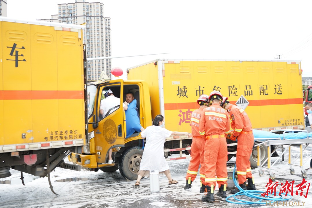 湖南日报·新湖南客户端7月4日讯(记者 陈新 通讯员 李智深 李宗桓) “是119吗?开福区竹隐路秀峰山公园路段一台客运车辆与危险运输车辆发生追尾事故,现场有人受伤!危险品甲醛有泄露,请求立即救援!”这惊心动魄的一幕不是真实事件,而是7月4日,长沙交通联合相关部门组织开展道路运输突发事件安全应急救援联合演练的现场。