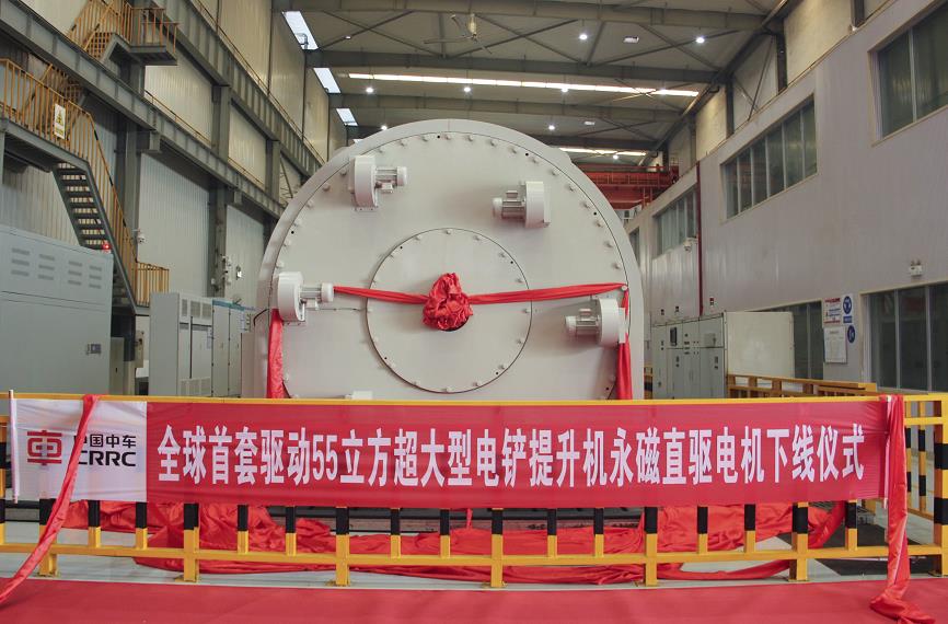 全球首套驱动55立方超大型电铲提升机永磁直驱电机下线