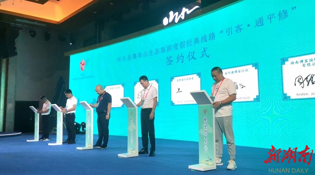 湖南日报·新湖南客户端7月29日讯(记者 周磊)今天上午,长江中游三省“通平修”绿色发展先行区协同推进生态产品价值实现平江专场活动举行。通城、平江、修水三县聚焦区域互联互通、产业互助互兴、生态共保共治、民生共建共享等方面的27项重点任务,共同签署2022—2023年度绿色发展协同推进实施要点备忘录,并发布“通平修”全域生态旅游经典线路图和三县文旅景点、民宿、农林产品。