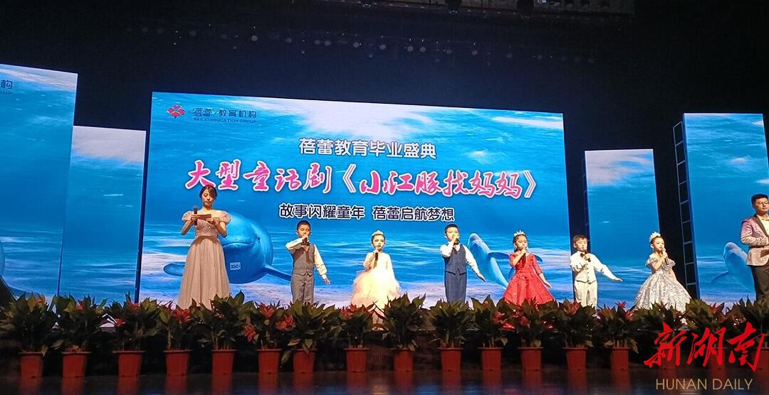 湖南日报·新湖南客户端7月22日讯(记者 马如兰)淘淘是一只住在洞庭湖的小江豚,有着爱他的妈妈,他们快乐地生活着……可是有一天,人类带着各种“钢铁怪物”来到了他们的家,淘淘妈妈也被抓走了。为了解救妈妈,小江豚淘淘开启了一段惊险之旅……今天下午,“故事里成长的蓓蕾娃儿”第29届毕业典礼在岳阳市文化艺术会展中心拉开大幕,童话剧《小江豚找妈妈》上演。