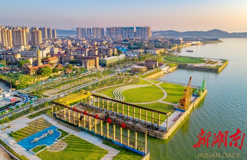 “岳阳港始建于1950年,是湘、资、沅、澧四水的主要港口,曾经几乎每天都有铁矿石、钢材等工业材料在此装卸,环境污染严重。”讲解员柔和的声音通过蓝牙耳机传入记者耳内。而后,岳阳港工业遗址公园被纳入洞庭南路历史文化街区的重点项目,沿湖建设1200余米洞庭湖岸线和330余亩的休闲景观公园。盛夏之中,正是市民晚饭后休闲消暑的绝佳去处。