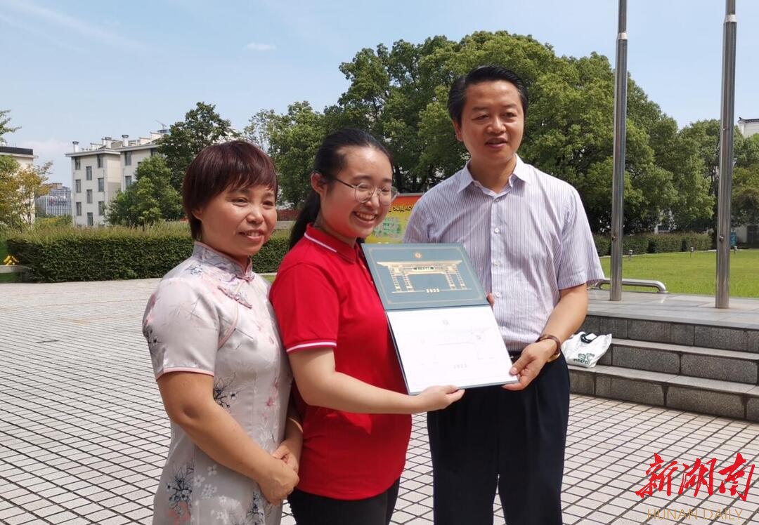 “杨雨盟同学的成功,是家庭教育、学校教育、社会教育三位一体共同浇灌的花朵,更是学生培养、自我发展、高校支持三驾马车共同发力的结果。雨盟同学确定了当教师的人生目标,想通过自己的继续努力帮助更多的残疾孩子,让他们融入社会,和他们共享美好生活。杨雨盟同学的目标,也是我们每一个教育人和教育工作者的目标。”岳阳市副市长黄伟雄和雨盟一起拆封录取通知书,共享喜悦。