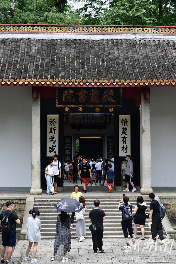 7月3日,游客在岳麓书院参观。从当天起,该书院在加强疫情防控的同时,恢复对公众开放。书院实行限流参观,每天限额4000人。暂不接待中、高风险等级地区所在地的游客及14日内有中、高风险等级地区旅居史的游客。此前,受疫情影响,岳麓书院自今年3月22日起临时闭馆。 湖南日报全媒体记者 田超 摄