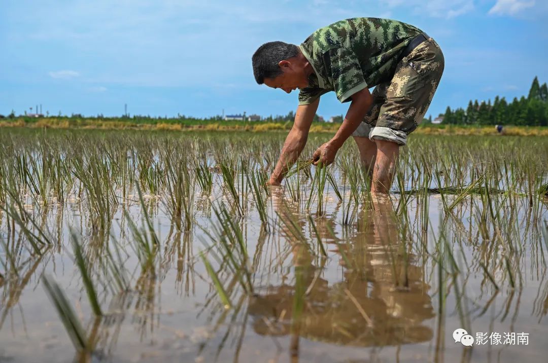 沅江市四季红镇四季红村蔺草种植基地,一位“割草客”在收割蔺草,用汗水收获希望。