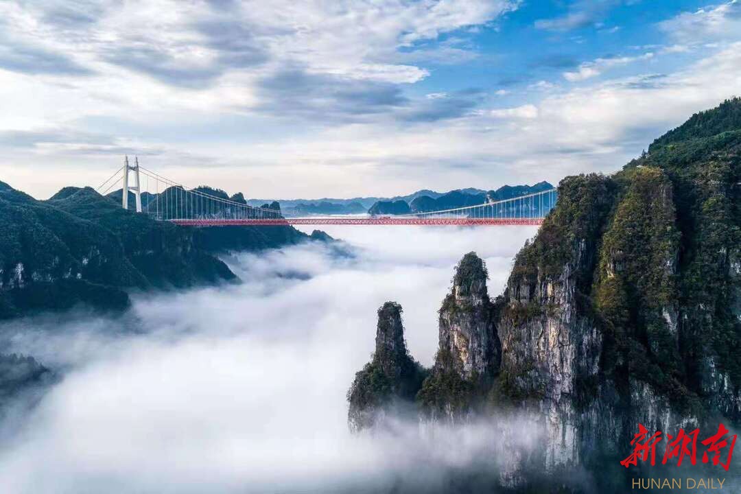 吉首市矮寨大桥日出朝霞云雾美如画 张术杰 摄