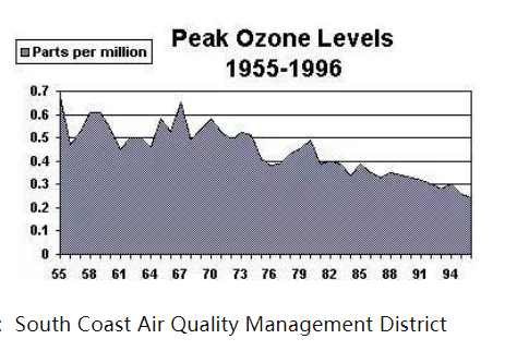 上世纪五六十年代美国洛杉矶爆发的光化学烟雾事件是世上首次大型臭氧污染事件,击碎了臭氧的“好人”滤镜。有研究称,当时洛杉矶地区的臭氧浓度达到上千微克/立方米,造成大量市民头痛、呼吸困难、患红眼病。