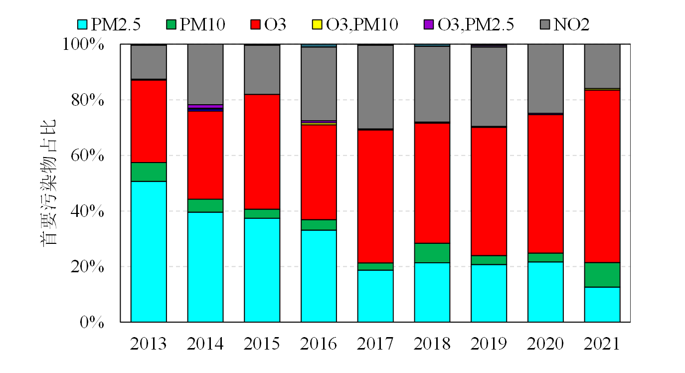 生态环境部发布的《2021中国生态环境状况公报》显示,2021年,168个地级及以上城市,臭氧为首要污染物的超标天数占到总超标天数的41.6%,超过PM2.5成为“罪魁祸首”。